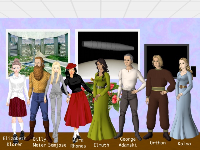 Using artwork from Dossier of UFO-Contactee UFOnauts and George Adamski’s Inside the Spaceships Artist’s Conceptions. Here is who was (allegedly) contacted by whom. Anyone not pictured has their name in ()’s.